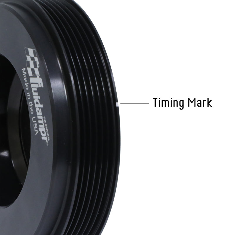 Protect your engine. Modifications can compromise your stock harmonic balancer. Install a Fluidampr performance damper early for best durability. Superior viscous damper design controls harmful torsional vibration across the entire rpm range. Reduce wear on engine components. Reduce risk of crankshaft failure. Improve timing. Unleash lost torque and horsepower. Precision CNC machined and balanced high-grade steel components. Corrosion resistant black zinc finish with engraved timing marks. No maintenance required. Trusted by leading engine builders worldwide. SFI 18.1 certified. Made in USA.