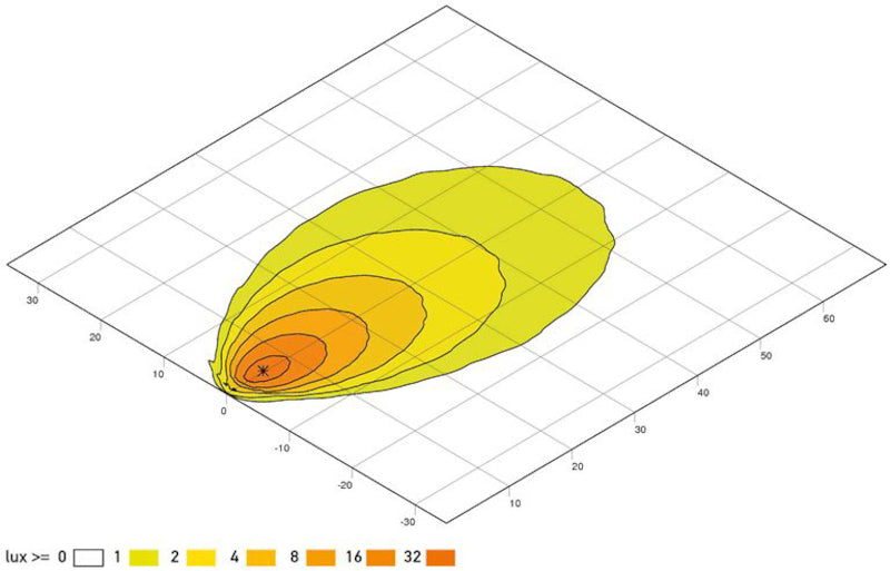 The light output is a powerful 2,000 lumen. The light is distributed by a specially developed multi-facetted reflector and ensures homogeneous illumination.