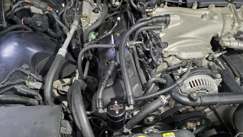 During the process of venting crankcase pressure back through your intake track, large amounts of oil, in the form of vapors can gather/accumulate in your intake tube, intake manifold runners and even dilute your gas, lowering its octane level. This happens on all engines and is even worse with forced inducted vehicles (supercharged and turbocharged) as crankcase pressures are increased. To combat this, we have developed an oil separator of our own design. Milled from solid billet aluminum this is a rock-solid piece. It has a knurled tank base for easy removal to drain the spent oil and an O-ring seal to prevent any leaks. Filtering consists of a fine mesh stainless steel screen that traps fine oil vapors and releases them once heavy enough to fall. They then pass through a 1/2" thick 1/16th" aluminum honeycomb filter where they grow every larger and then fall into the bottom. By the time the oil gets through the filter it's too heavy to be passed on into the intake. The tank holds 3 oz of fluid, while that may not sound like a lot, you shouldn’t see that much oil in your PCV system. Drain it every 2000-3000 miles and you will never come close to filling it.