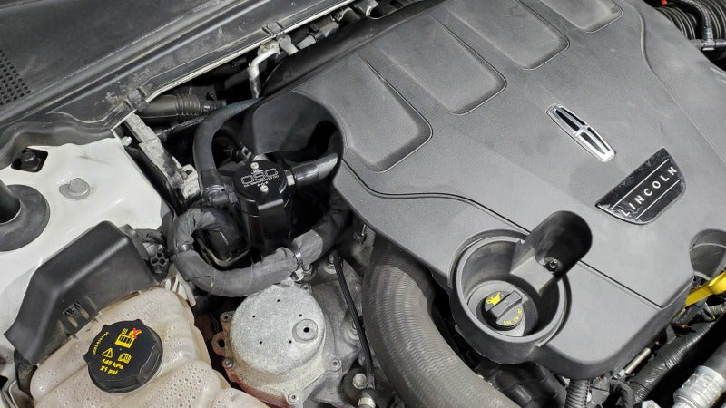 During the process of venting crankcase pressure back through your intake track, large amounts of oil, in the form of vapors can gather/accumulate in your intake tube, intake manifold runners and even dilute your gas, lowering its octane level. This happens on all engines and is even worse with forced inducted vehicles (supercharged and turbocharged) as crankcase pressures are increased. To combat this, we have developed an oil separator of our own design. Milled from solid billet aluminum this is a rock-solid piece. It has a knurled tank base for easy removal to drain the spent oil and an O-ring seal to prevent any leaks. Filtering consists of a fine mesh stainless steel screen that traps fine oil vapors and releases them once heavy enough to fall. They then pass through a 1/2" thick 1/16th" aluminum honeycomb filter where they grow every larger and then fall into the bottom. By the time the oil gets through the filter it's too heavy to be passed on into the intake. The tank holds 3 oz of fluid, while that may not sound like a lot, you shouldn’t see that much oil in your PCV system. Drain it every 2000-3000 miles and you will never come close to filling it.