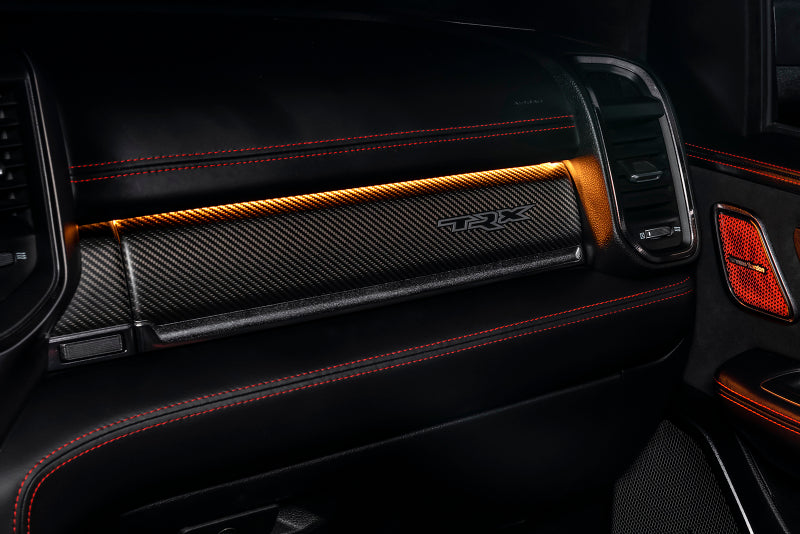 Unimpressed with the dim white light in the dash of your new RAM truck or looking for an easy way to add unique style to the vehicle's interior? With the new ORACLE Lighting Interior Ambient Lighting ColorSHIFT(tm) RGB Kit for the 5th Gen RAM, you can turn the stock dash light into a vivid color accent! This kit is the perfect way to accent your interior cleanly and seamlessly. With an easy-to-use smartphone app, control your new RAM RGB dash lights to be any color imaginable for a style that's all your own. Our RAM ambient lighting dash kit uses ColorSHIFT(tm) RGB circuit boards that replace the existing circuit boards in the dash. Easily connect to our included RGB Bluetooth controller via plug-and-play connections. Connect the controller to the cigarette lighter adapter in the dash using the included connectors, and you can control the lights using the free app on your smartphone. Using the app, you have full control of the hundreds of colors, patterns, and brightness levels. Our cutting-edge RGB interior ambient lighting kit for 5th Gen RAMs is a great way to personalize your ride with show-stopping looks and industry-leading performance. Stand out with new, modern LED styling with ORACLE Lighting!